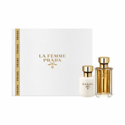 مجموعة عطر لا فيم (La Femme) للنساء من برادا تتضمن عطر أو دي بارفيوم بحجم 80 مل ولوشن للجسم بحجم 100 مل. تعتبر هذه المجموعة تجربة كاملة للعطر، حيث يمكنك استخدام العطر المطابق للجسم لتدوم رائحته لفترة أطول.